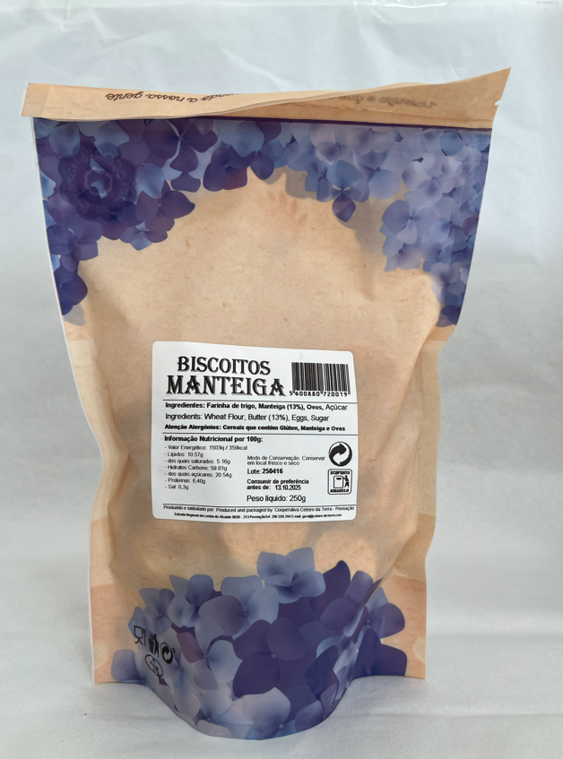 Feitos com manteiga verdadeira e uma pitada de tradição, estes biscoitos de manteiga da Celeiro da Terra são tudo o que se espera de um doce caseiro: crocantes, dourados e com um sabor que reconforta.