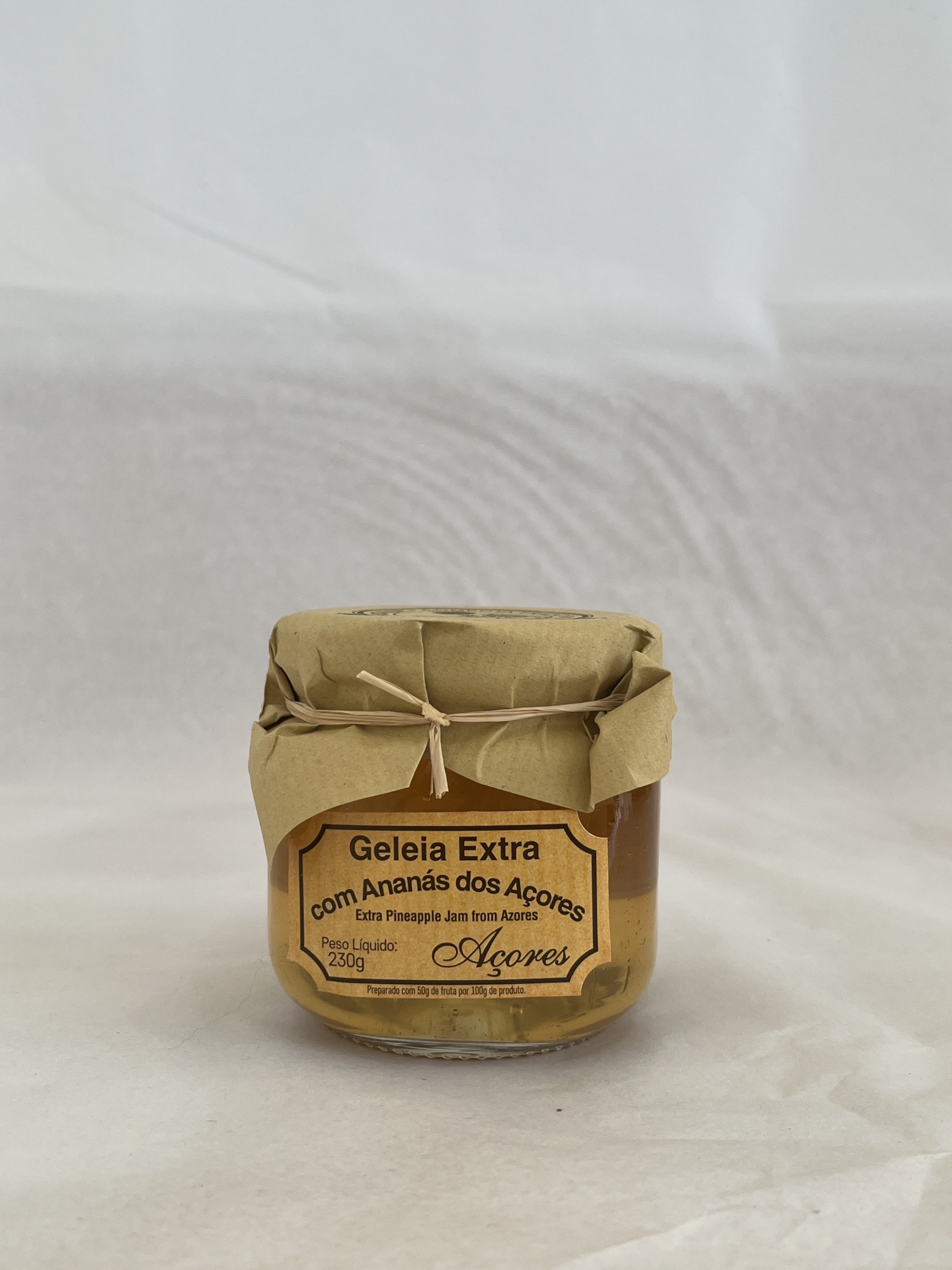 Uma verdadeira iguaria açoriana, feita a partir de ananás dos Açores e açúcar, com uma textura delicada e sabor natural e intenso. Esta geleia é produzida com 50g de fruta por 100g de produto, resultando num doce equilibrado e genuíno, ideal para acompanhar torradas, queijos ou rechear bolos e tartes.