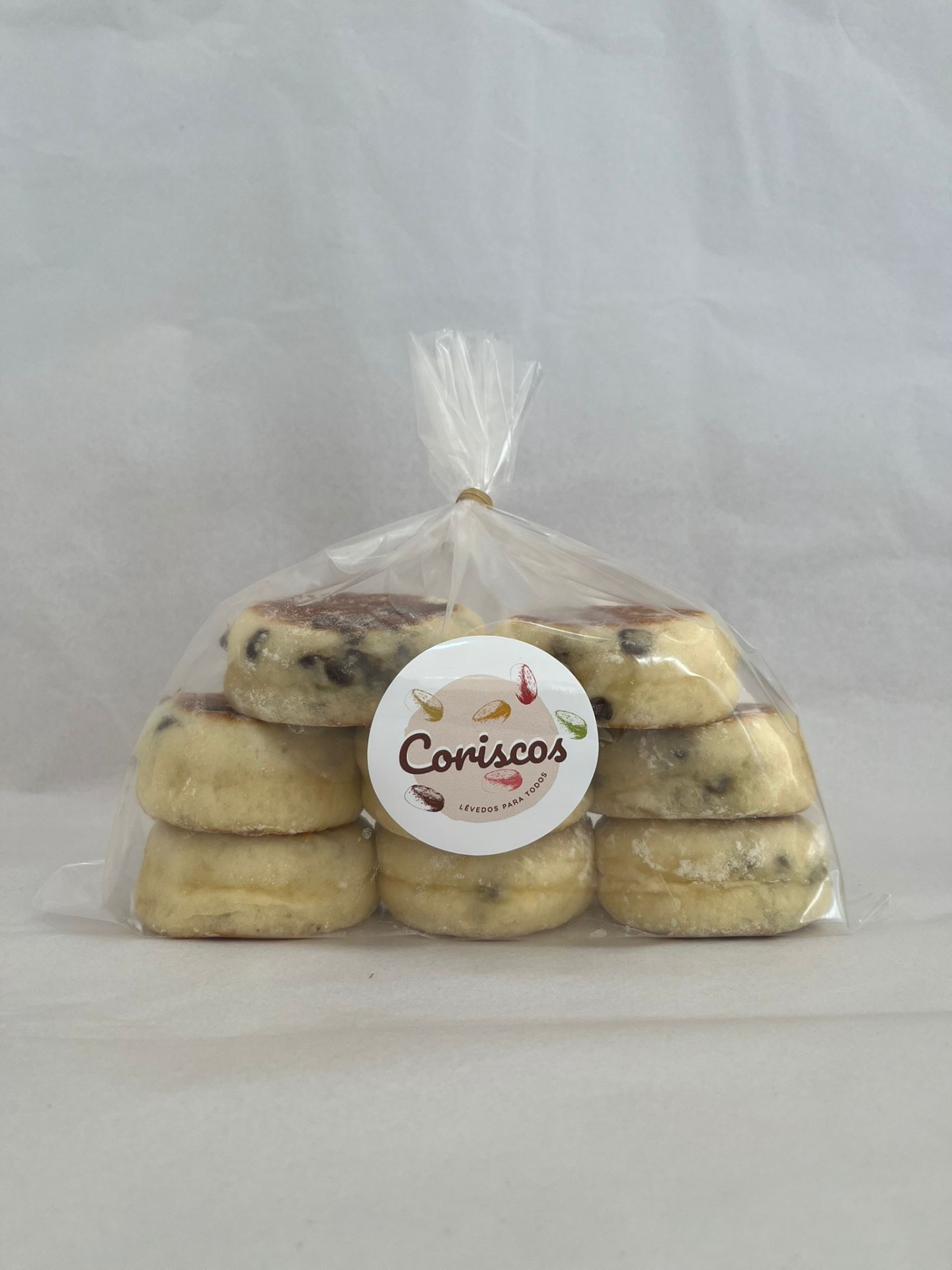 Mini lêvedos com pepitas. 8 bolinhos doces e fofinhos.