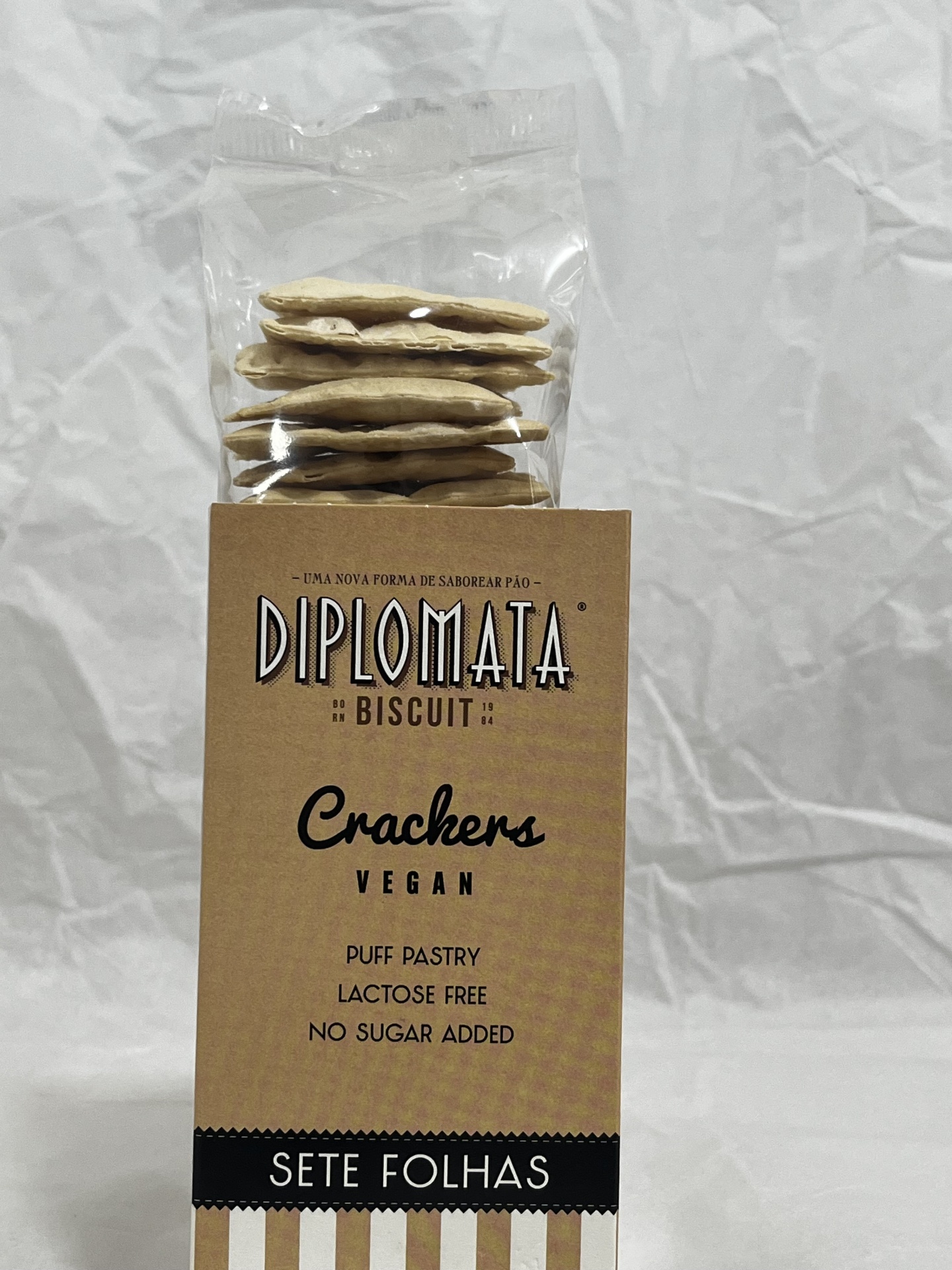 Crackers Sete Folhas - Vegan 2,80 € Desconto de %. Laminadas em finas folhas de massa. Muito estaladiças e secas. Quantidade Comprar Contactar 11 unidades em stock Marca Diplomata Biscuit Tags aveirobolachasdiplomata biscuitsete folhas Características Partilhar Descrição Informação Geral Tabela Nutricional Verdadeiramente única. Laminada com finas folhas de massa de pão. Muito seca, estaladiça e crocante. Excelente com queijo, doces, patês ou mesmo sem mais nada. Ingredientes e Alérgenos: Ingredientes: farinha de trigo; água; margarina vegetal; amido de milho; leite de coco; sal marinho. Conservação e Utilização: Conservar num lugar fresco e seco. Capacidade: 125g Produzido e embalado por: Diplomata Biscuit Energia: 1940kj / 4462kcal Lípidos 718.5g dos quais saturados: 8.2g Hidratos de carbono: 65.1g dos quais açucares: 2.9g Proteinas 7.4g Sal 1.6g Também poderá gostar de
