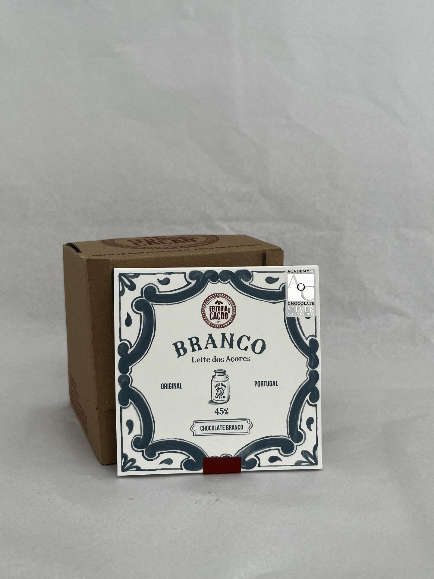A Feitoria do Cacao elaborou uma receita original de chocolate branco, para realçar o paladar único do leite dos Açores, combinando a manteiga de cacau natural com a quantidade de açúcar bastante reduzida, sem aromatizantes, nem emulsionante (como todos os chocolates da nossa marca). Doce, mas equilibrado, onde se apreciam a riqueza e o sabor puro do Leite açoriano em forma de tablete.