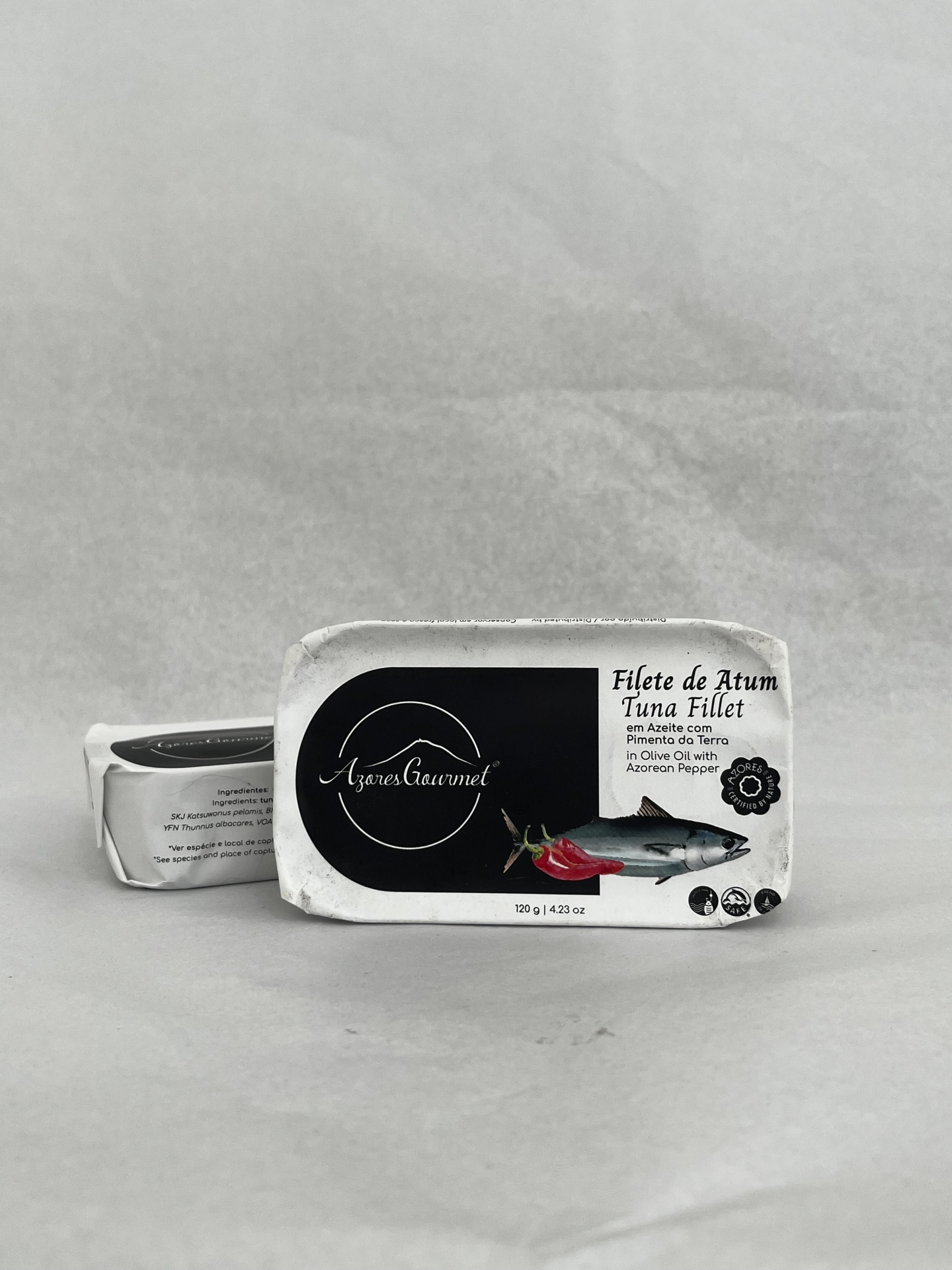 Ingredientes: atum, azeite (19.8%), pimenta vermelha curtida dos açores (14%), vinagre de vinho (contém sulfitos) e sal.