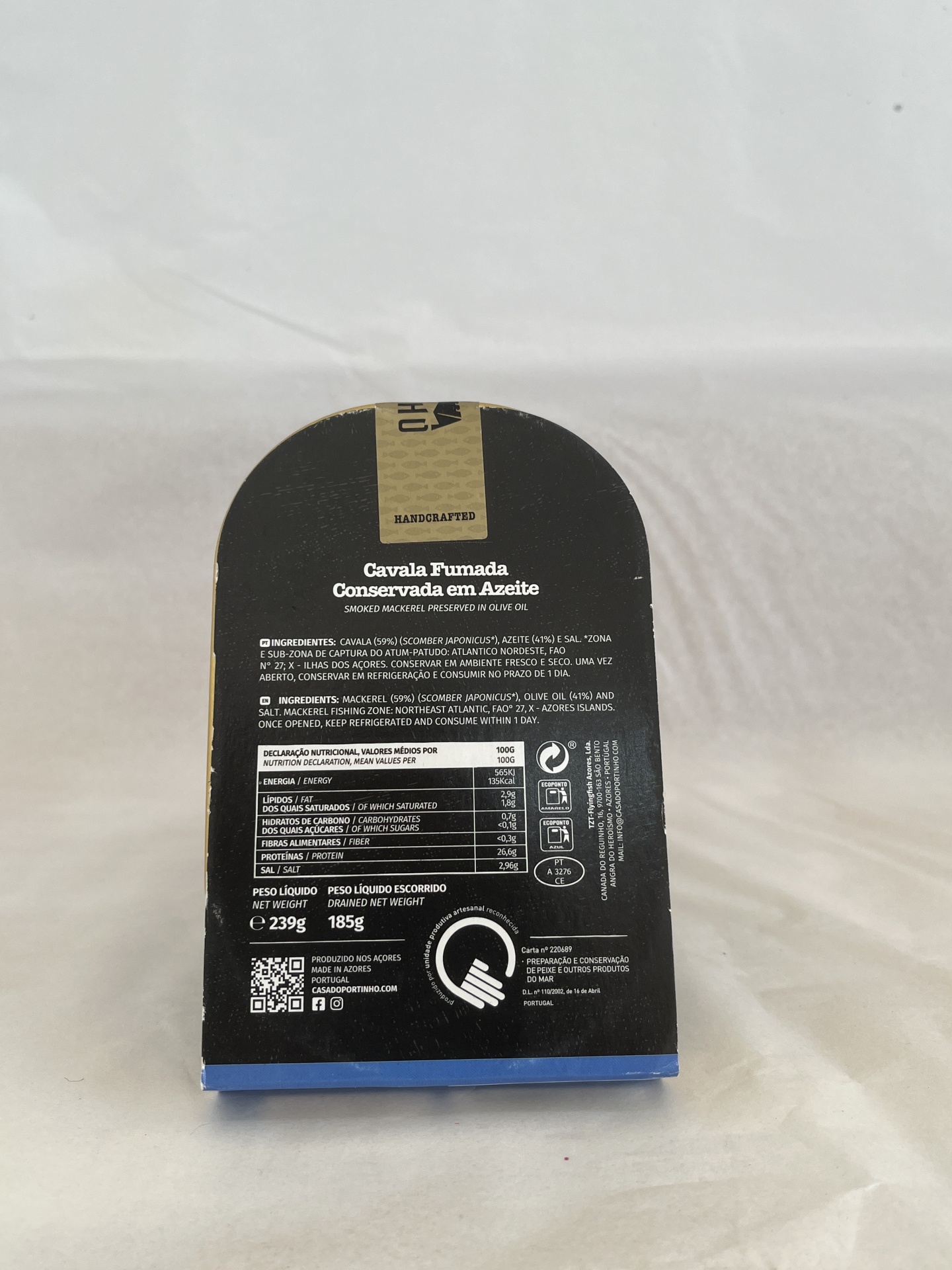 Cavala Fumada dos Açores - Filete 8,90 € Desconto de %. Cavala fumada em azeite. Artesanal e cheia de sabor. Quantidade Comprar Contactar 1 unidades em stock Marca Casa do Portinho Tags açoresconservascasa do portinho Partilhar Descrição Informação Geral Cavala fumada em azeite, de produção artesanal açoriana. Rica em proteína e sabor, ideal para tábuas ou sanduíches. Ingredientes: cavala (59%), azeite (41%) e sal. Conservação e Utilização: Conservar num lugar fresco e seco. Após abertura, conservar em refrigeração e consumir no prazo de 1 dia. Peso Líquido: 239gPeso Escorrido: 185g Também poderá gostar de